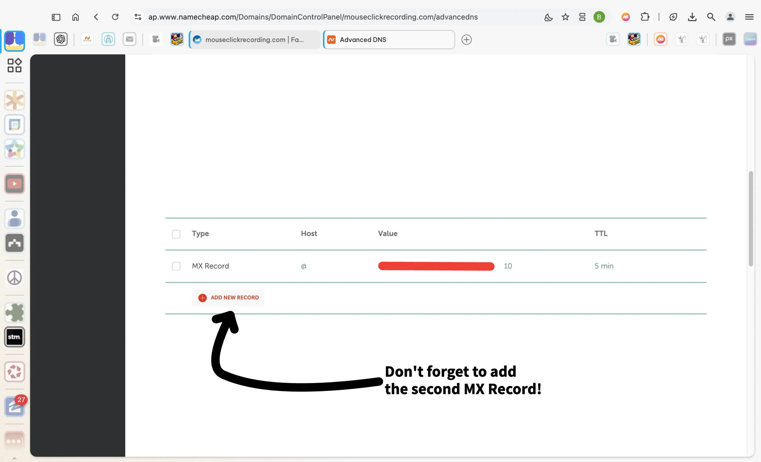 Click Add New Record: After adding the first MX record, click the Add New Record button to add the second MX record.