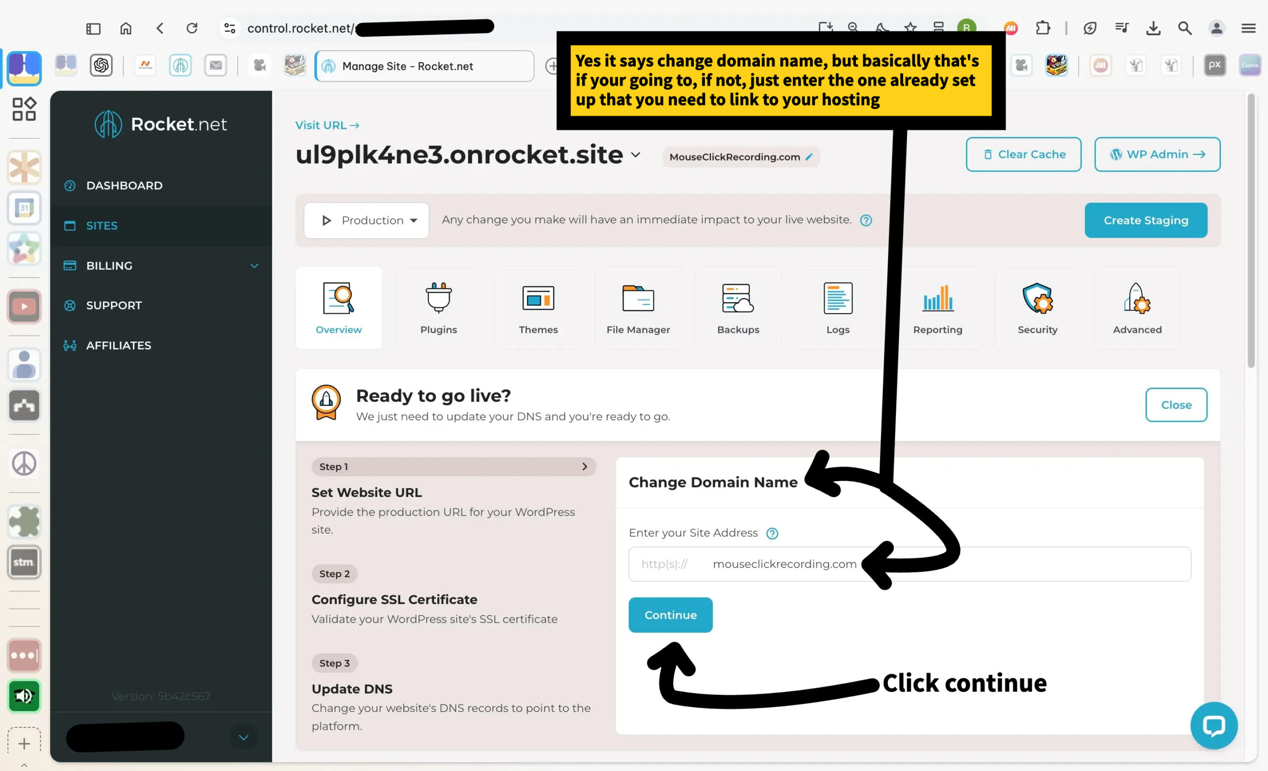 This step ensures Rocket.net knows which domain to associate with your hosting account.