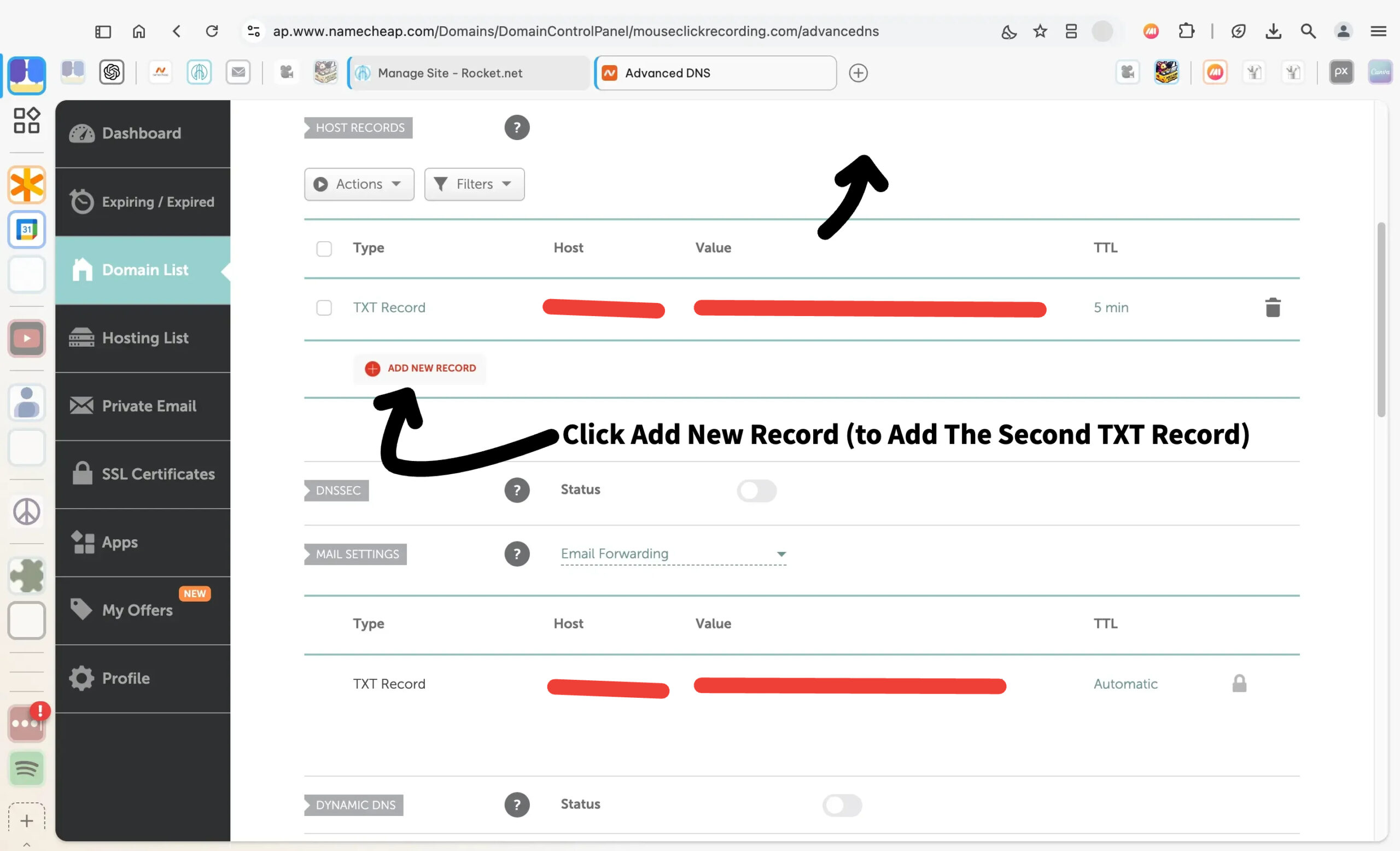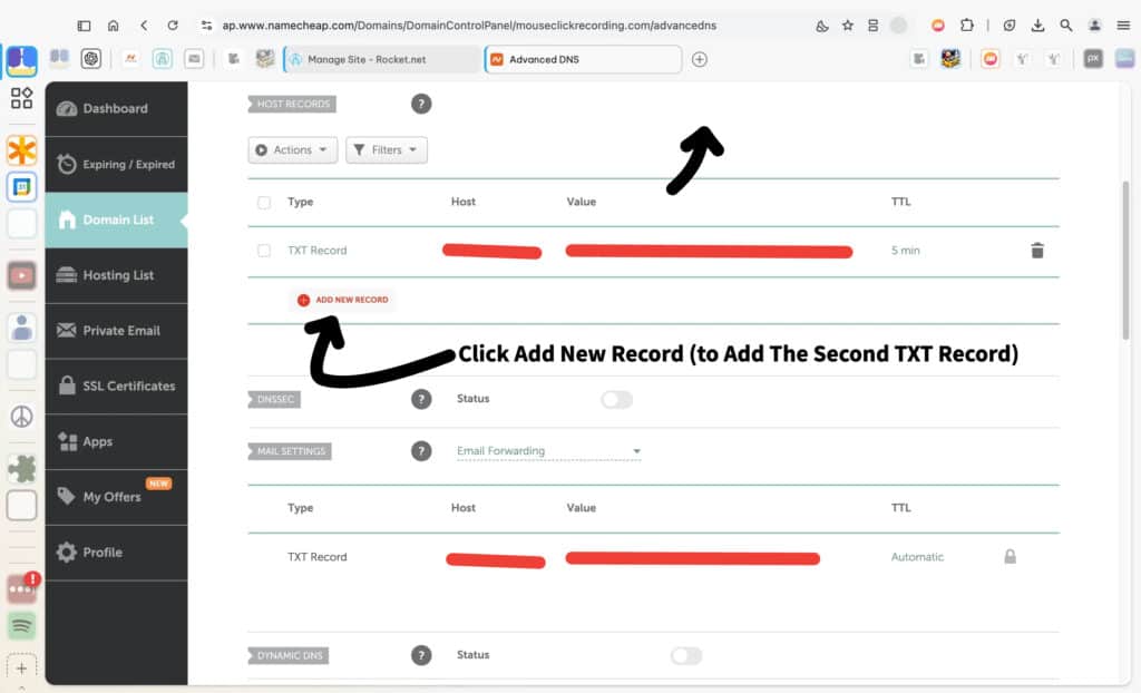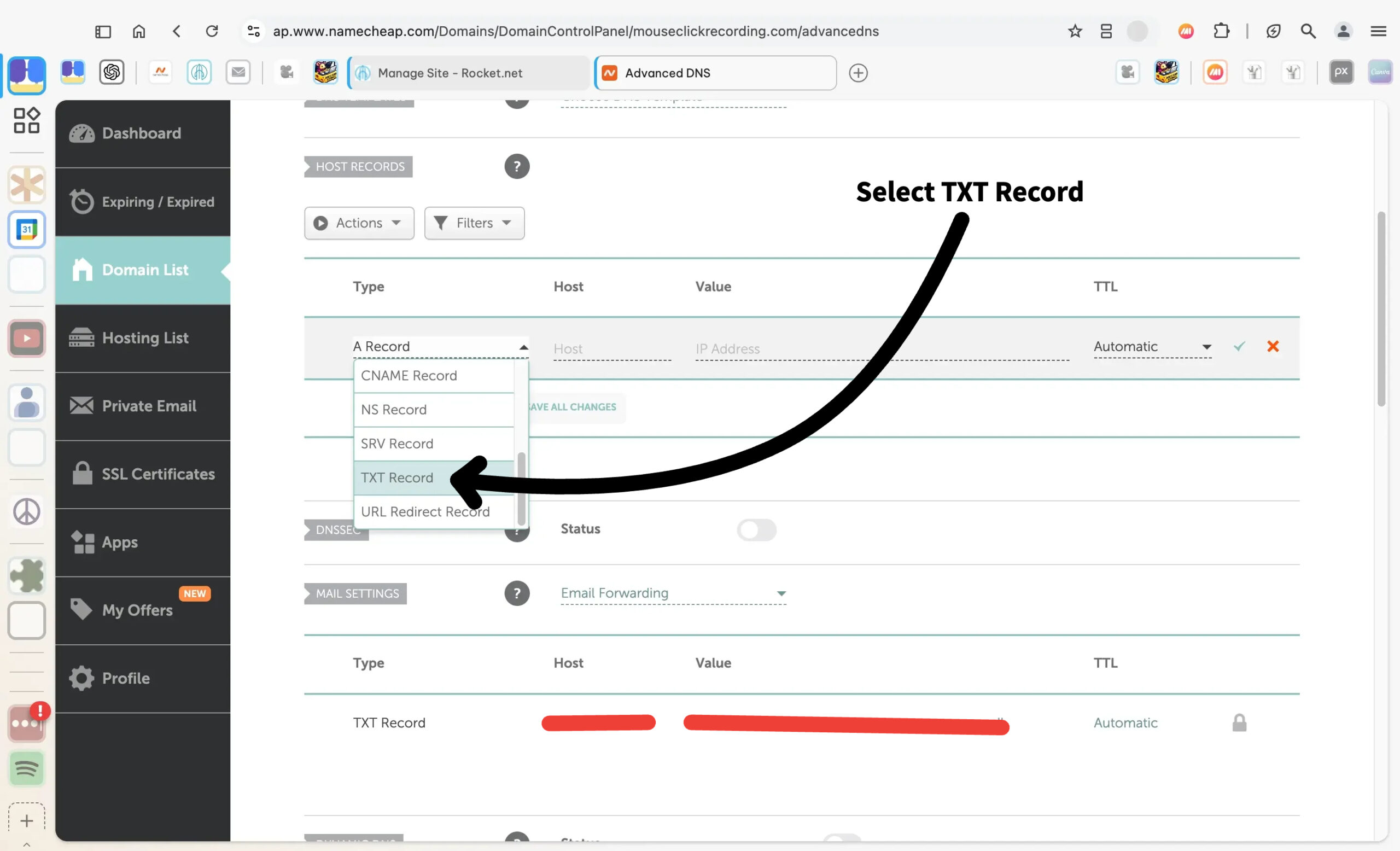 To start setting up your domain’s TXT records in Namecheap, follow these steps: