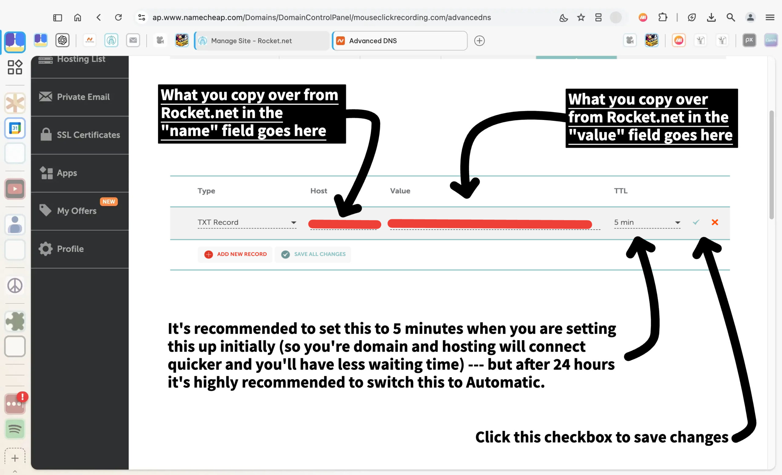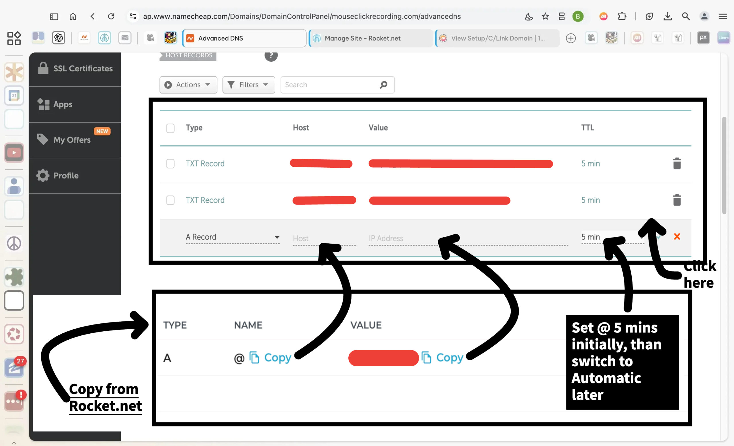 - Rocket.net’s “Name” = Namecheap’s “Host”