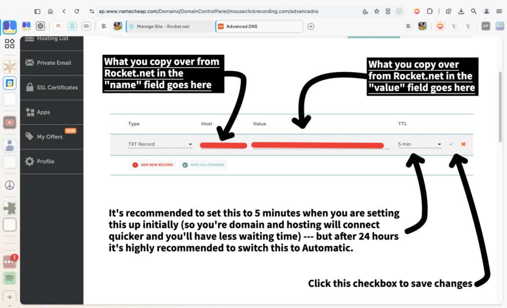 At this stage, simply take note of this information. In the next steps, you’ll be guided through the exact process of entering these details into your DNS settings at Namecheap. The tutorial will show you every click needed to complete the process, so there’s no guesswork.