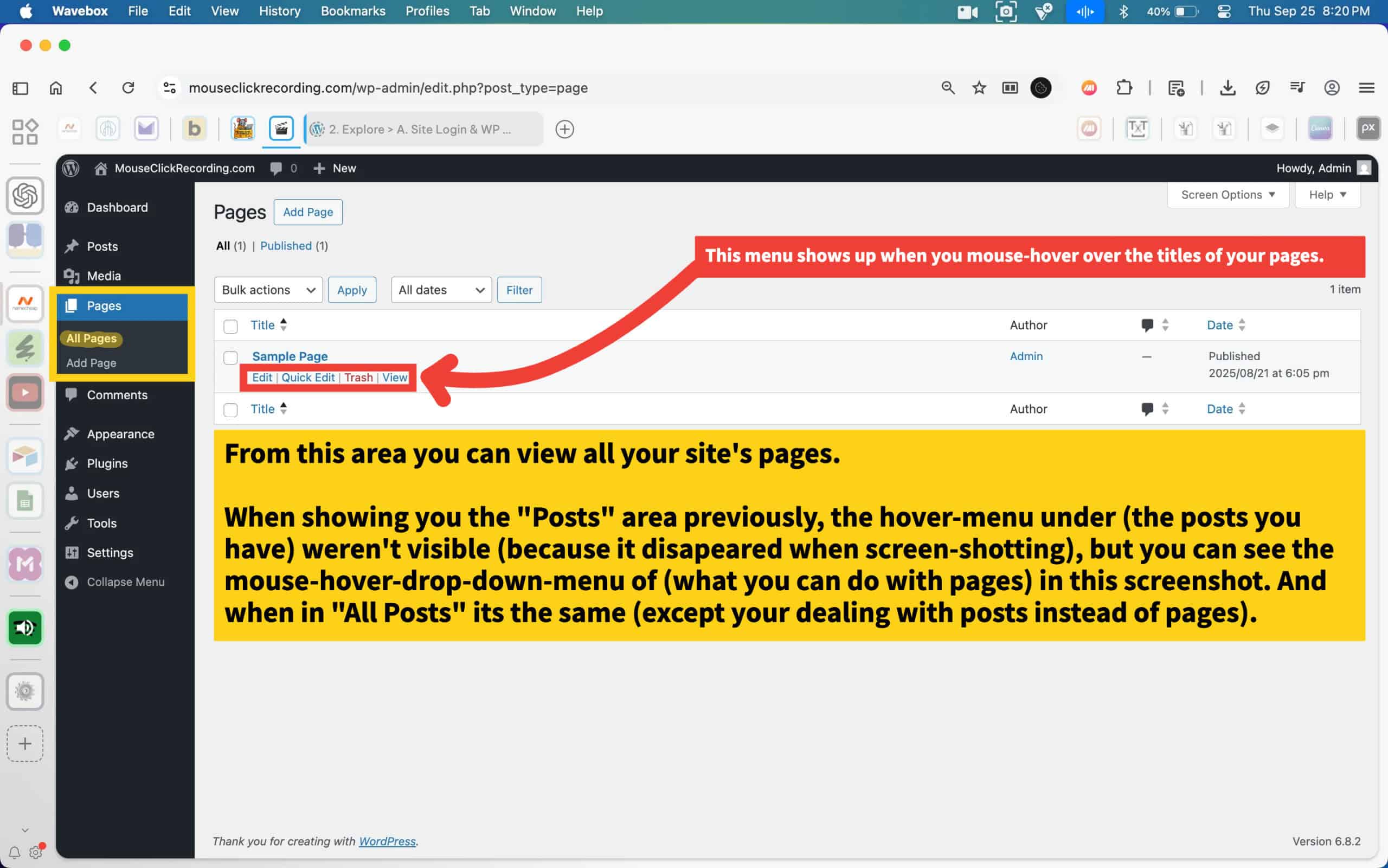Pages hold content meant to last: About, Contact, Services, or other permanent sections. They don’t use categories or tags and are not tied to dates. They can be organized hierarchically, with one page nested under another, which helps structure larger sites. Together, they form the backbone of site navigation.