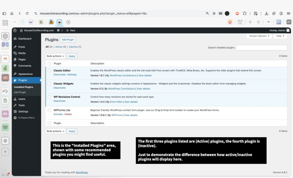 Plugins extend WordPress with new functionality. From SEO and analytics to e-commerce and backups, plugins are how WordPress becomes a platform. This section handles installation, activation, updates, and removal. Success depends on selectivity: too many plugins slow a site, while well-chosen ones add enormous value.