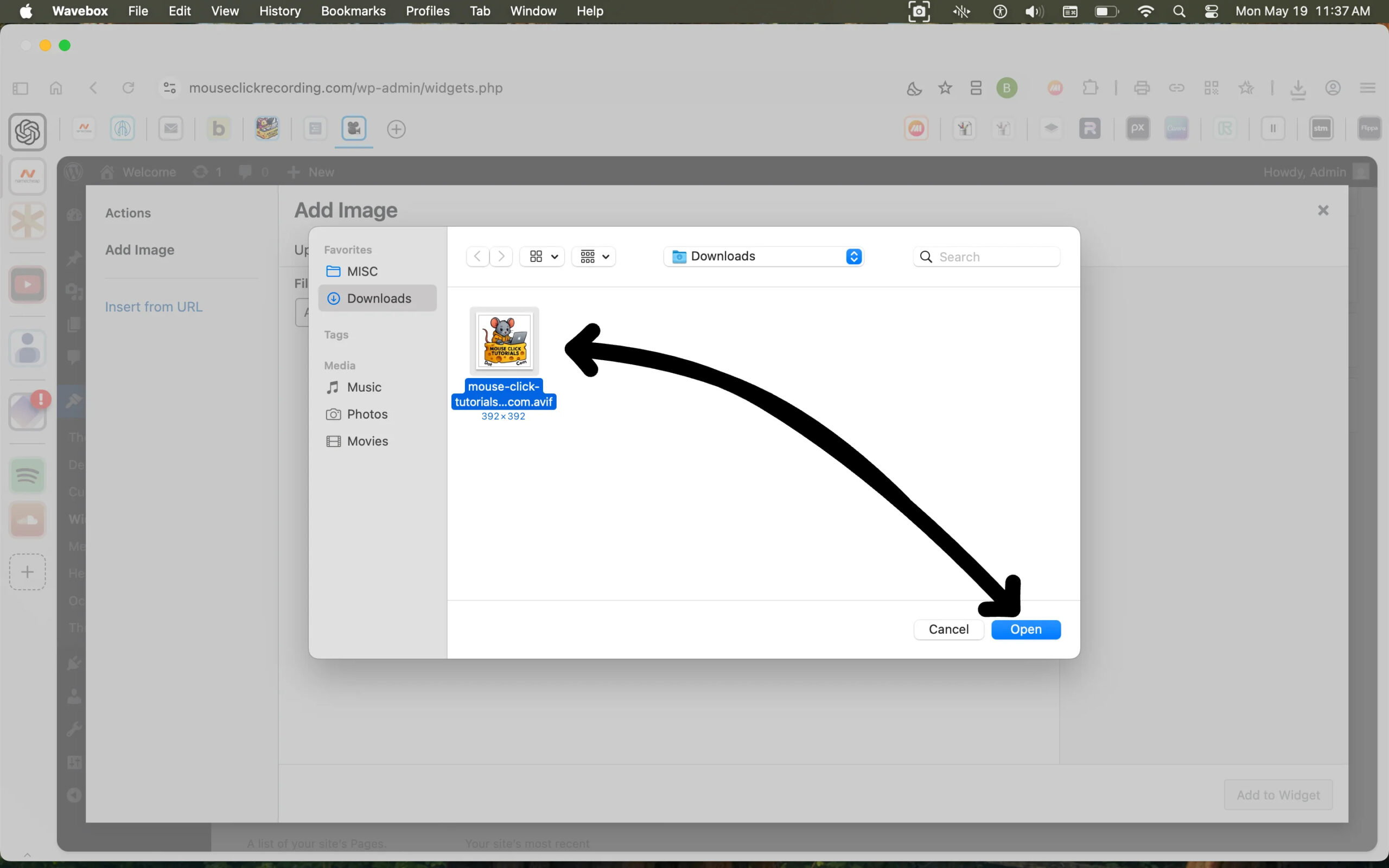 This action sends the file to WordPress — nothing is placed on your site yet.