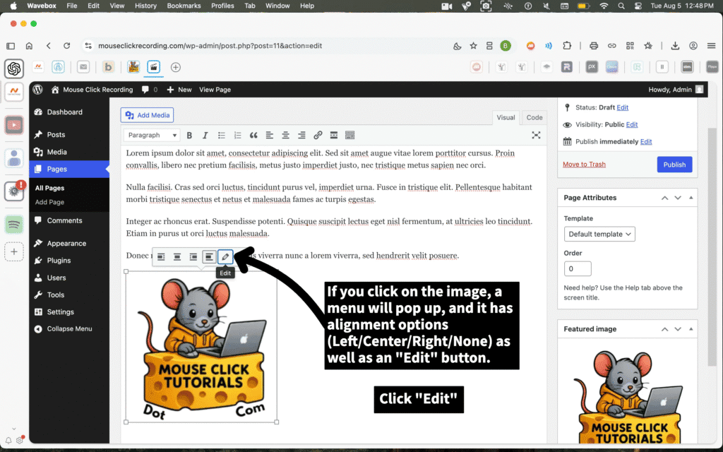 Click the Edit button to open more detailed image settings — including size, alt text, link options, and more. That’s what we’ll cover next.