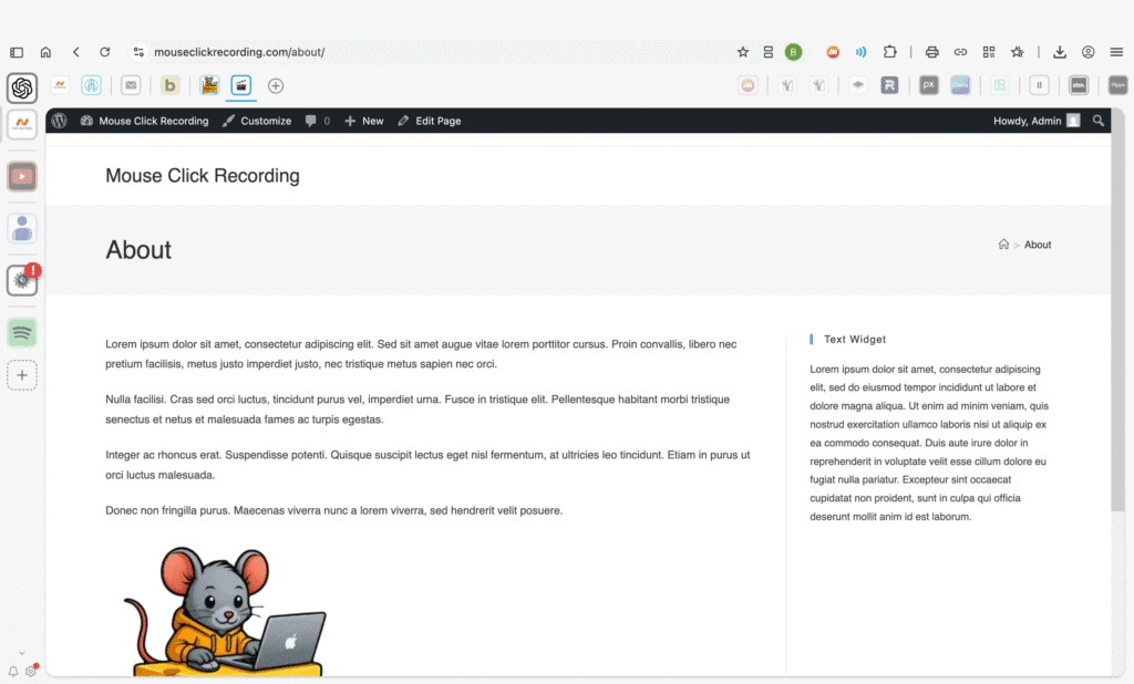 Type your page title at the top — like “About.” Below that is the content area where your actual text will go. The text shown here is just example filler used for this tutorial.