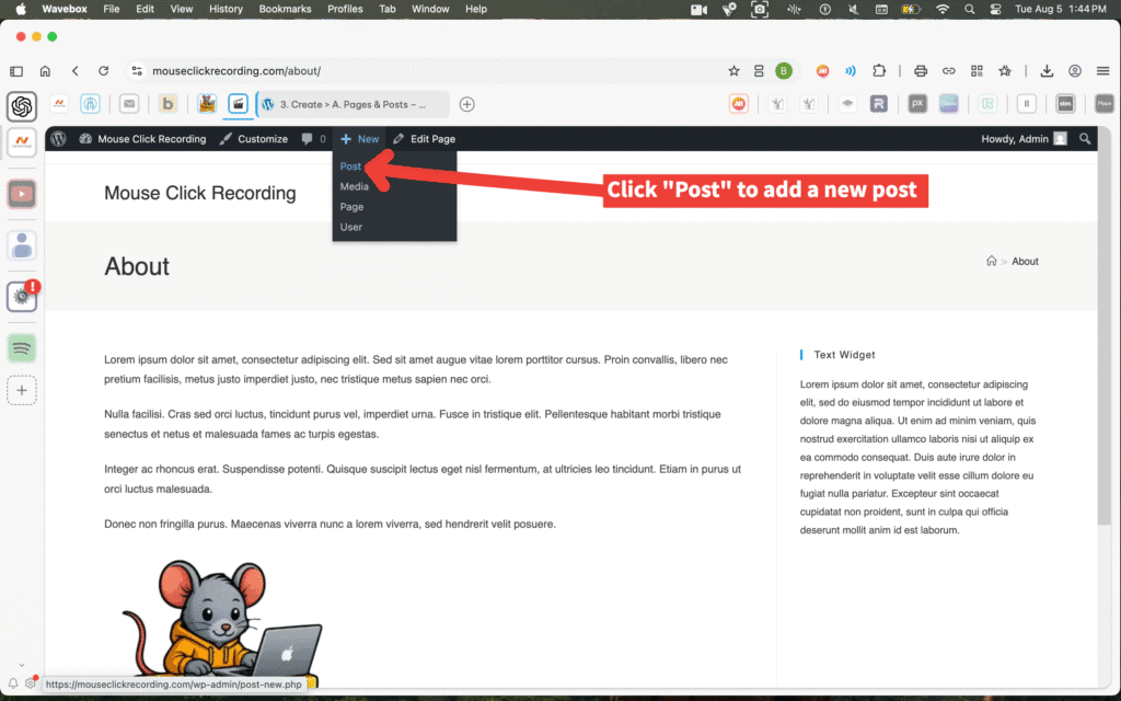 3. Create > A. Pages & Posts