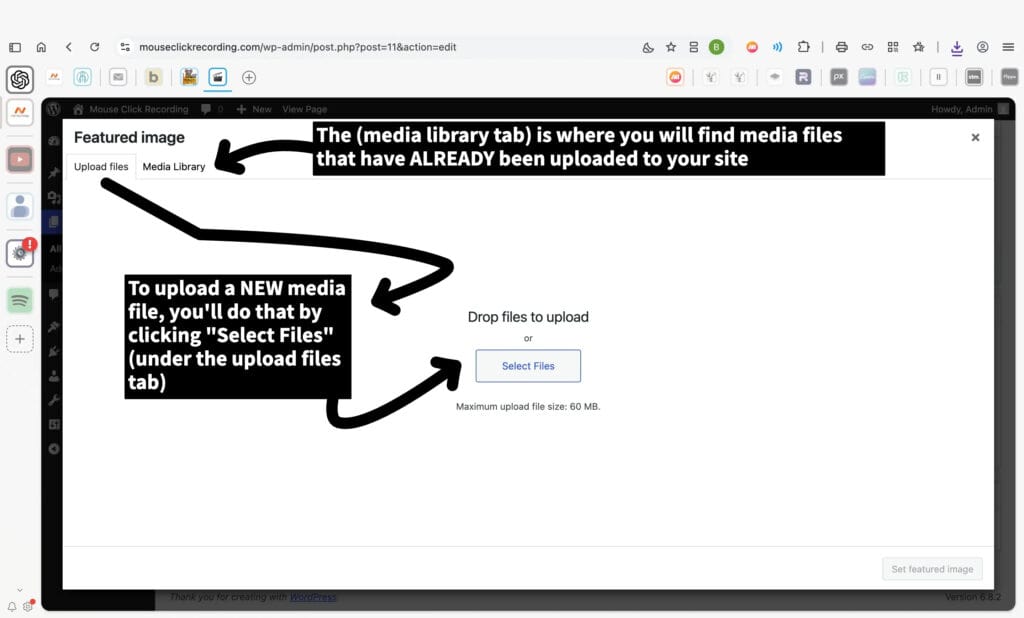 (If you’ve already uploaded images before, you can also find them in the Media Library tab.)
