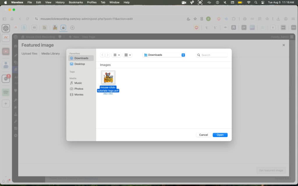 Find the image on your computer, click it to select it, then click Open to upload it.