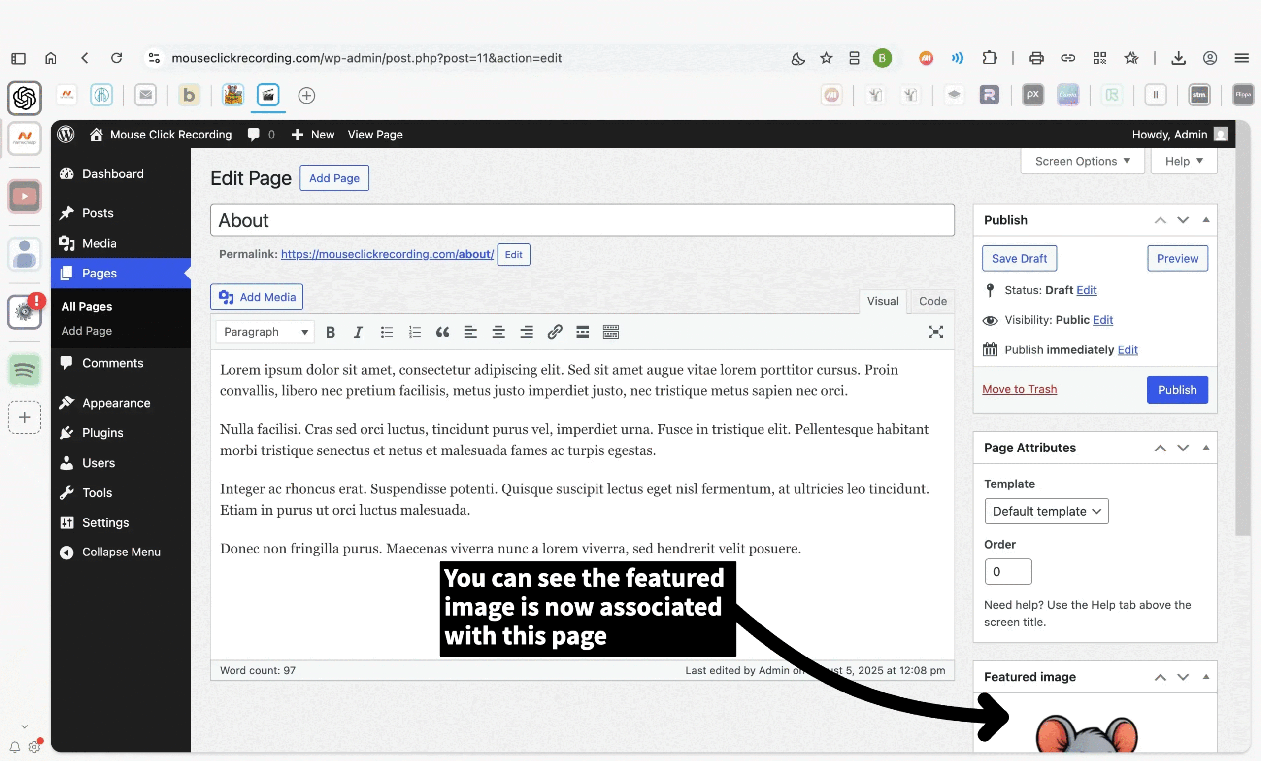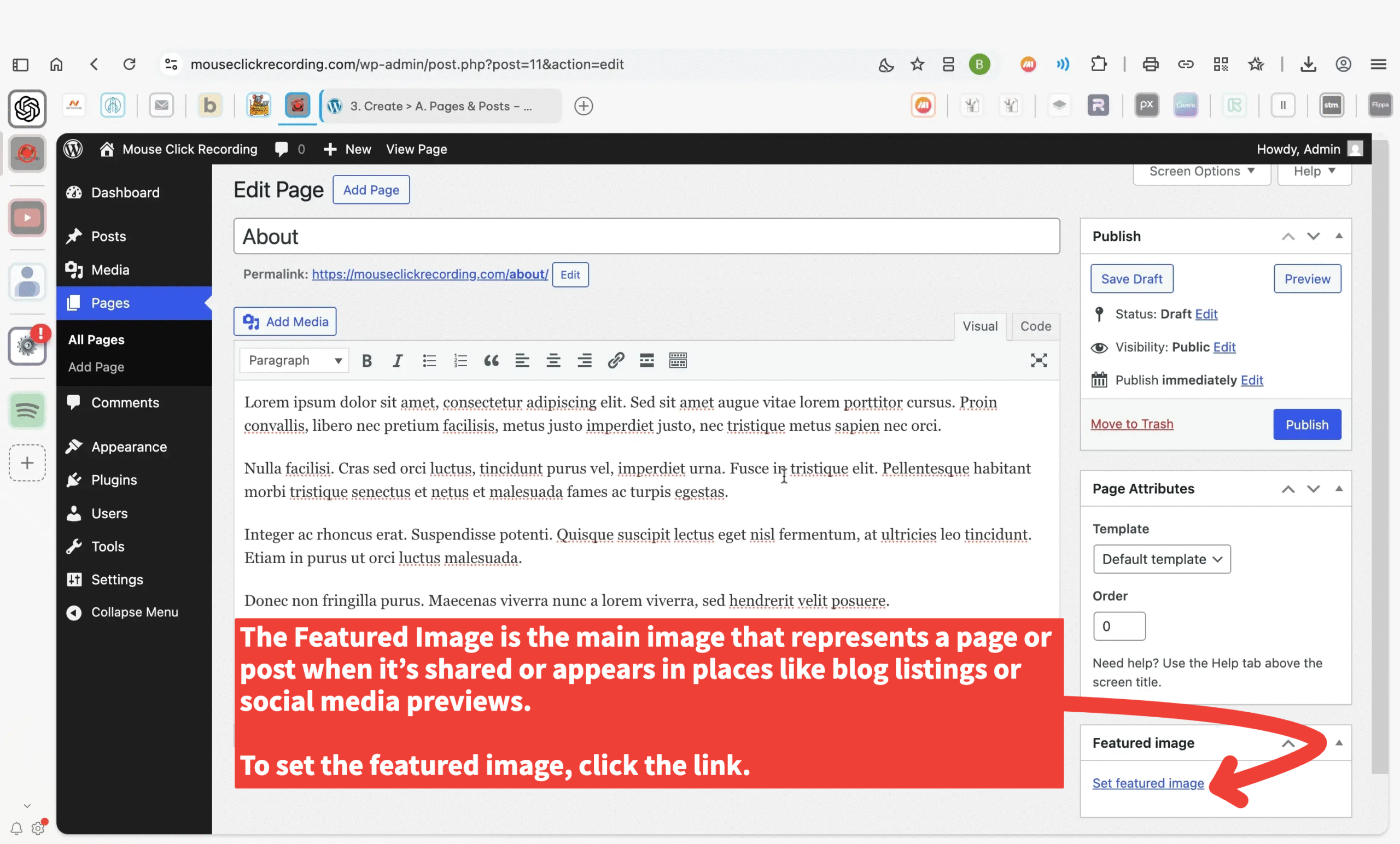 The featured image is what shows up when a page or post is shared — like in blog listings or on social media.