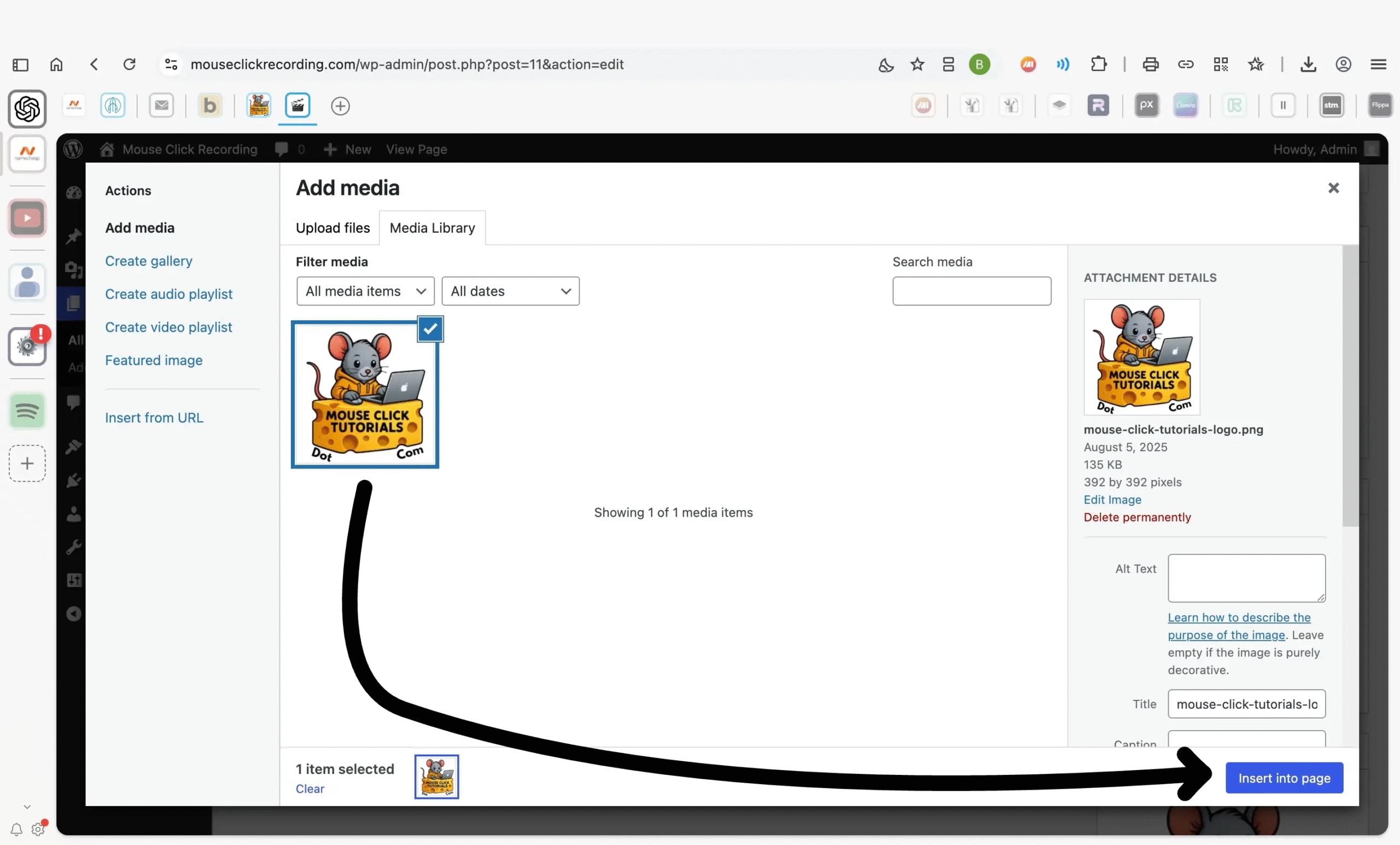 Once you’ve selected your image, click Insert into page in the bottom-right corner. That will place it wherever your cursor was inside the content editor.