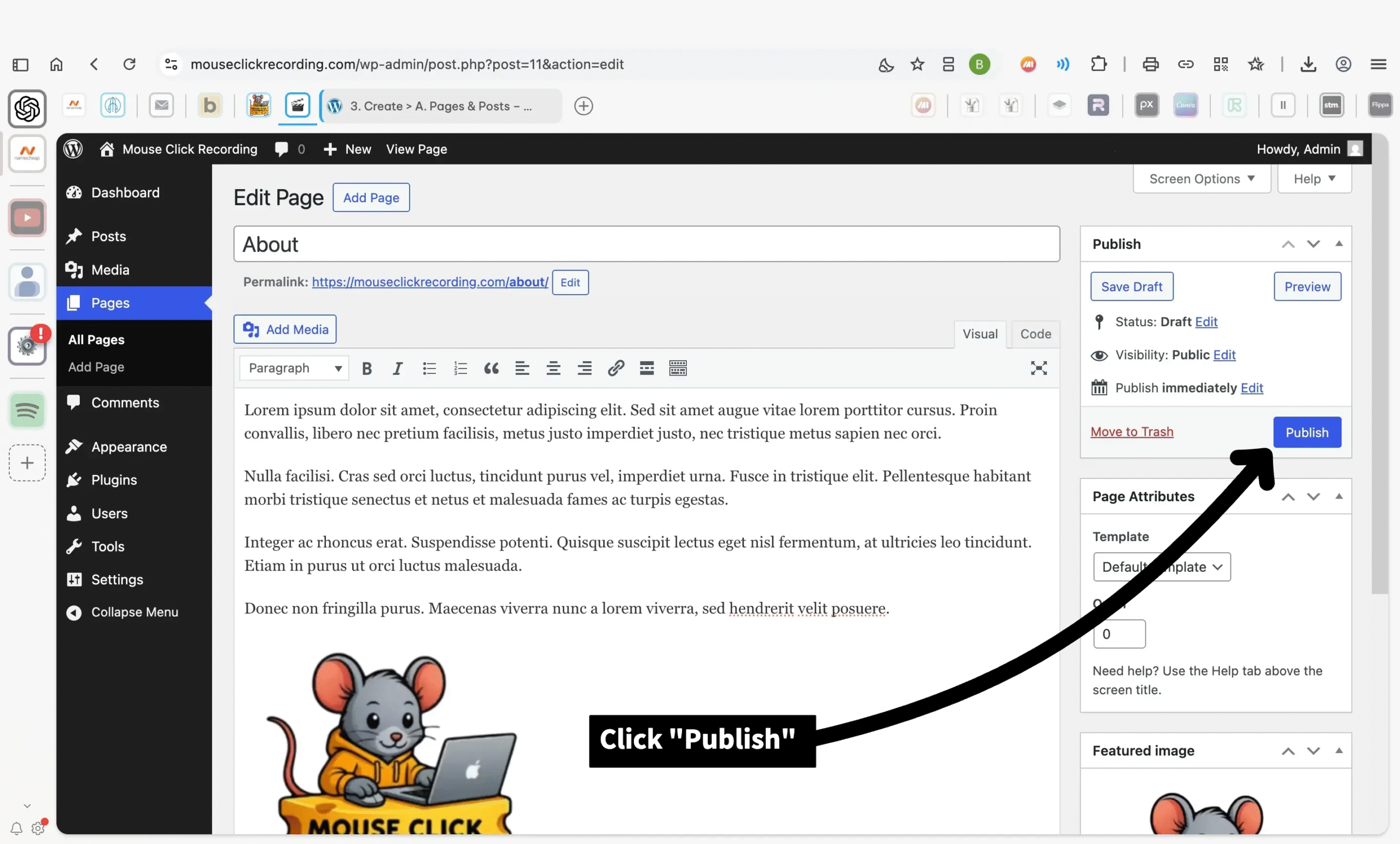 3. Create > A. Pages & Posts